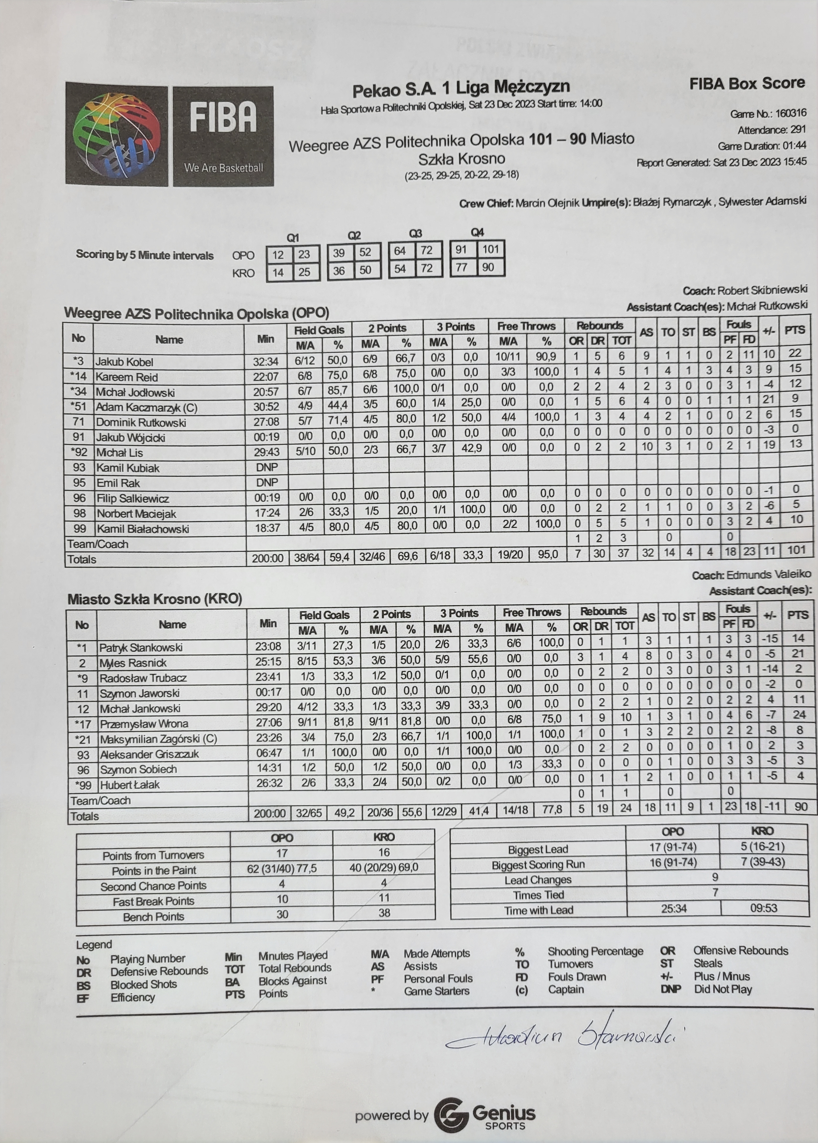 Sędziowie: Marcin Olejnik, Błażej Rymarczyk, Sylwester Adamski | Komisarz: Arkadiusz Starnawski