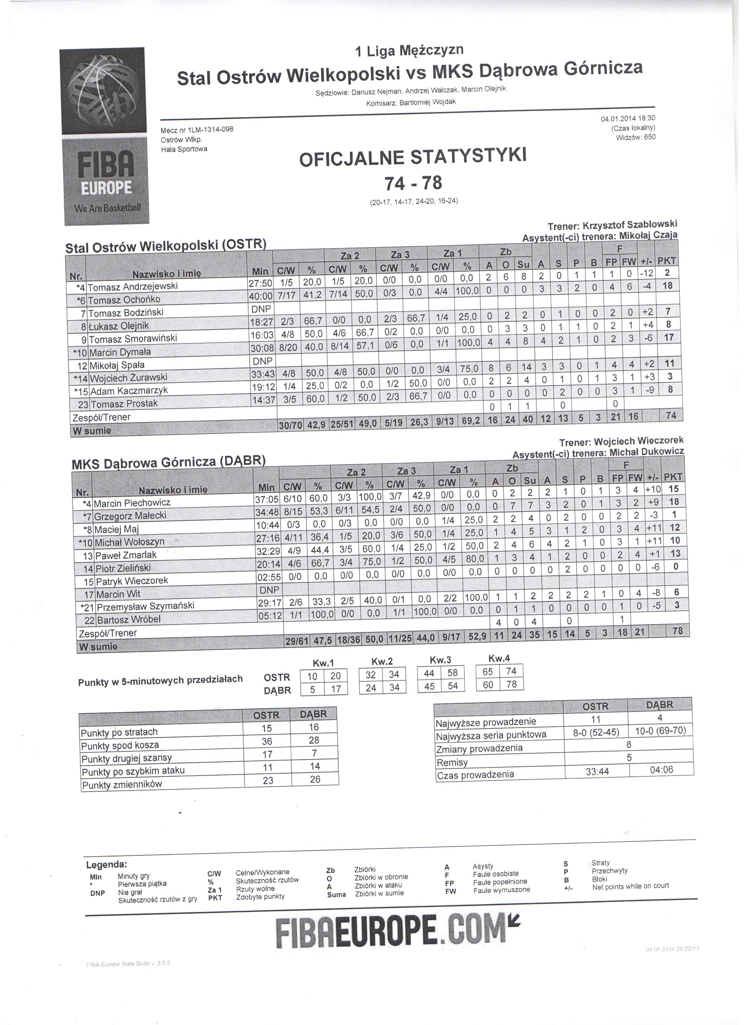 14 Wojciech Żurawski 11 33:434/8 50.0   4/8 50.03/4 75.08 6 14 3 4 4 3   1   21 2