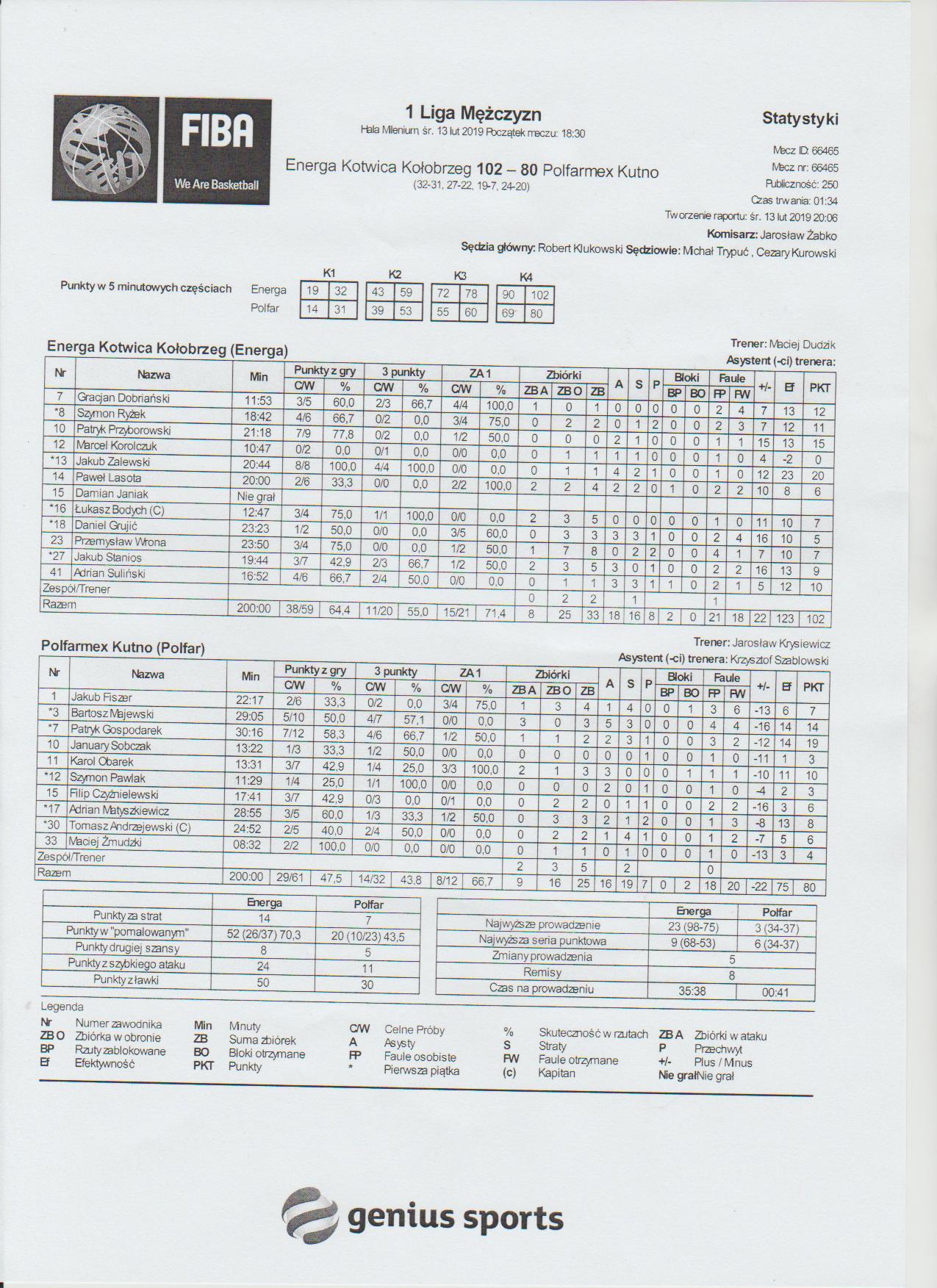 | 13, J. Zalewski, celny z wyskoku za 2 | 19 | 05:23:00 | 14 | |