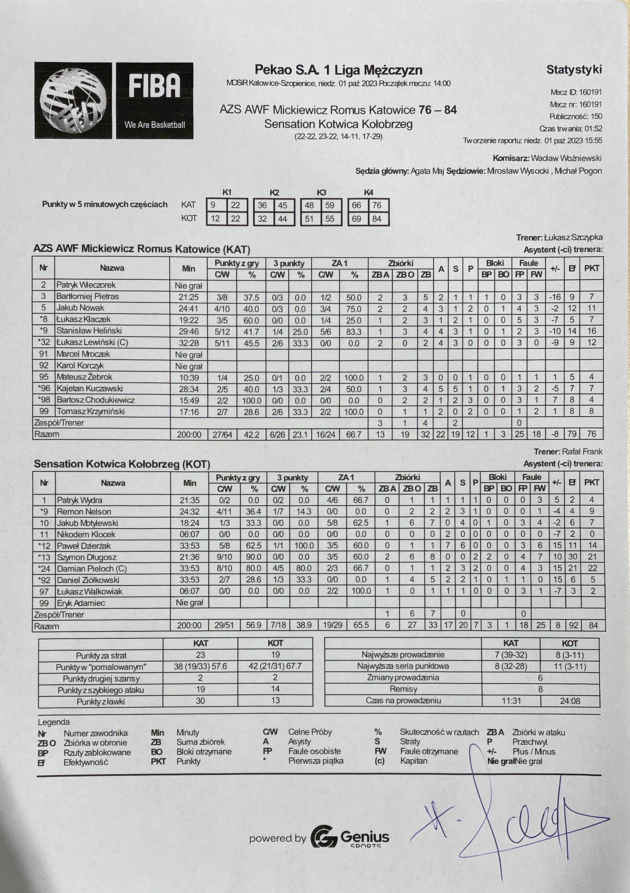 Sędziowie: Agata Maj, Mirosław Wysocki, Michał Pogon | Komisarz: Wacław Woźniewski