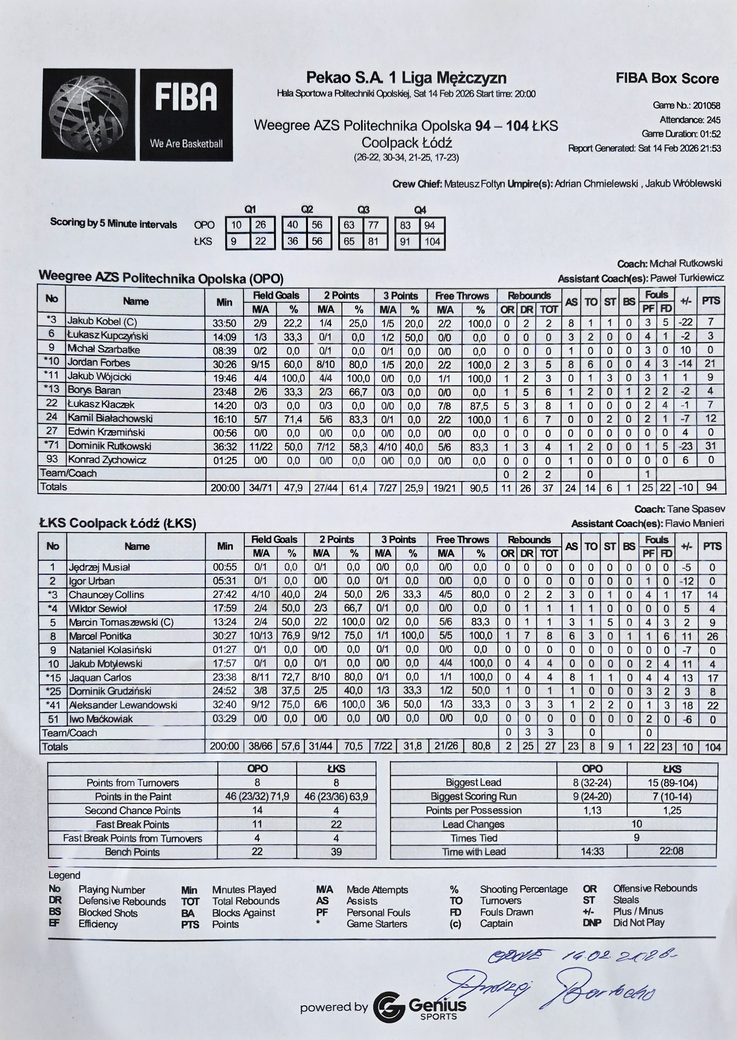 Suma 94 200:00 27/44 61.4 7/27 25.9 34/71 47.9 19/21 90.5 11 26 37 24 25 22 14 6 1 1 107