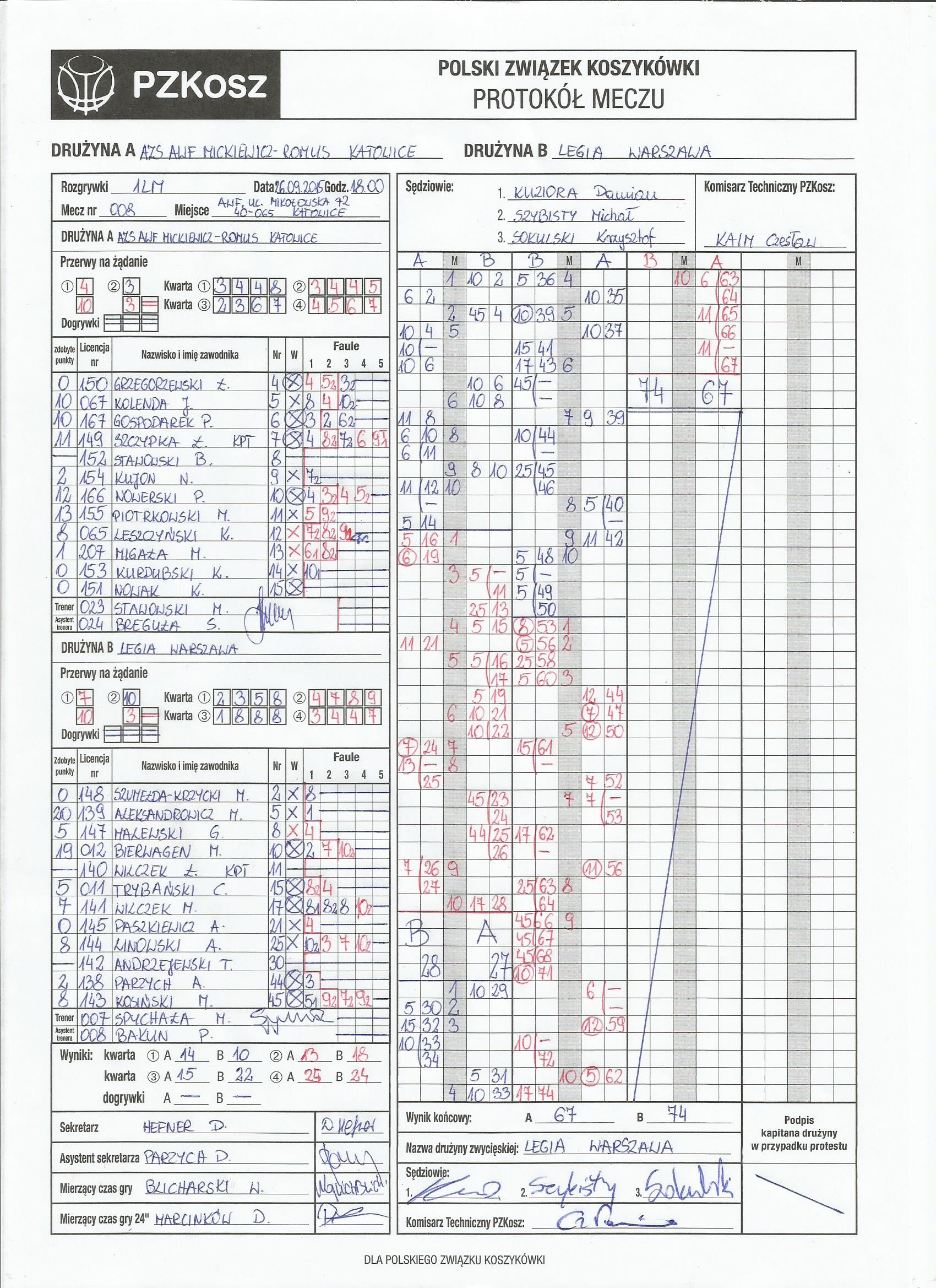| AZS AWF Mickiewicz Romus Katowice | Kwarta 1 | Legia Warszawa | ||